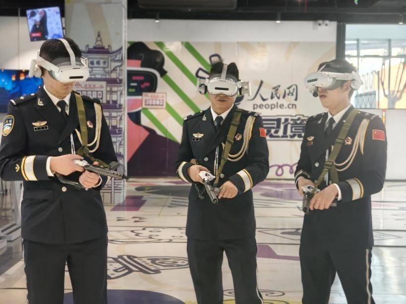 民辅警体验AI+XR剧目《跟着走·长征》。人民网 王战雄摄